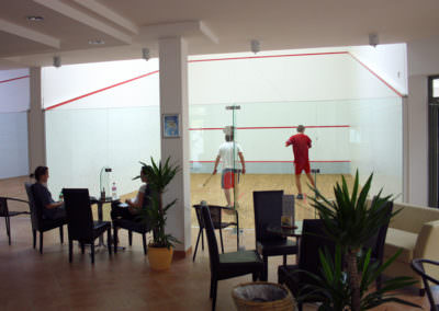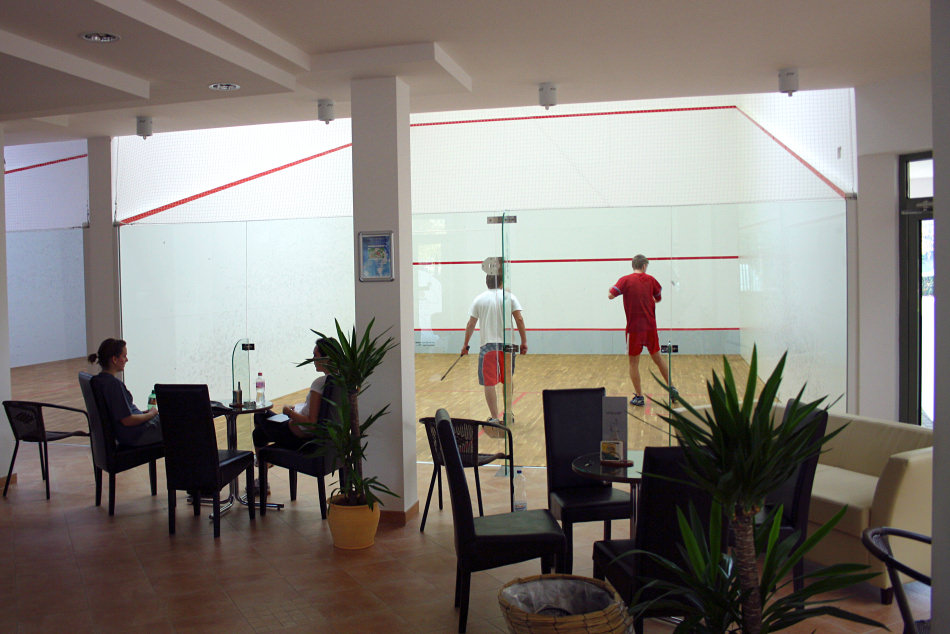 4 szabványos méretű squah-küzdőtér; 1 aerobik terem; szauna