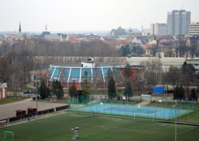 A műfüves pálya mellett átöltözési lehetőséget biztosító épület található. Kedvelt edzéshelyszín, melyet rendszeresen igénybe vesznek a Szolnoki MÁV FC felnőtt és ifjúsági labdarúgó csapatai is, valamint itt zajlanak cégünk szervezésében a Szolnoki Kispályás Labdarúgó Bajnokság és a Nyári Kispályás Labdarúgó Bajnokság mérkőzései is. Több nagyobb rendezvénynek is rendszeresen helyt ad a létesítmény, pl. Bozsik Tornák, Tiszaligeti Napok egyes sportági versenyei.