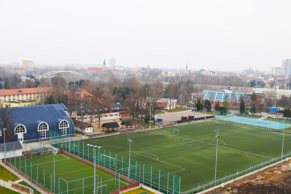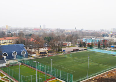 A műfüves labdarúgó pálya a mellette lévő, nagyméretűvel együtt került átadásra 2009-ben.